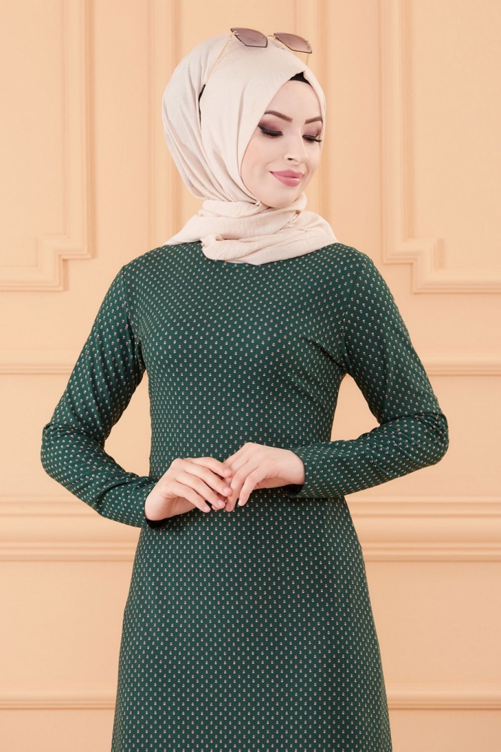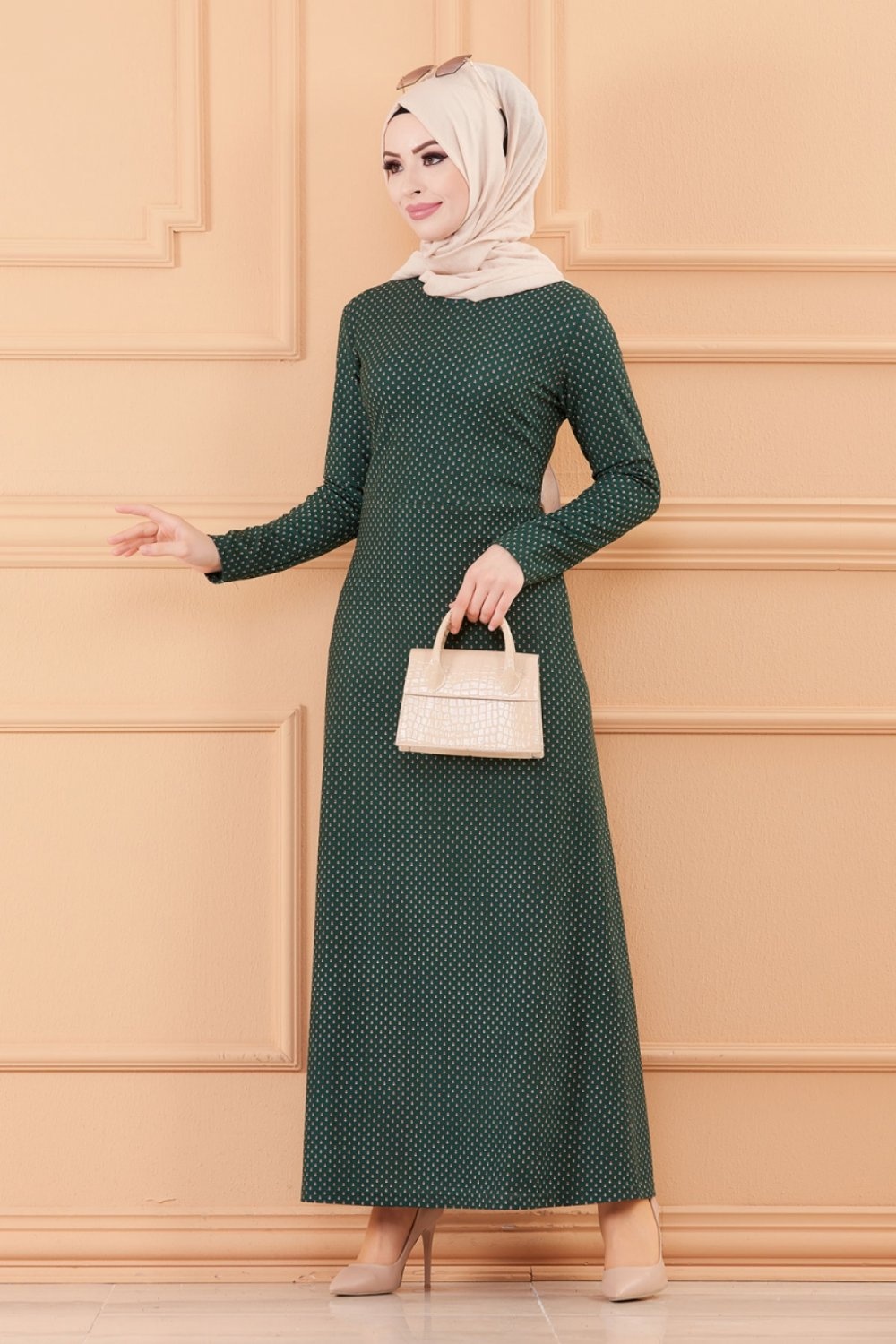 Robe longue evasee pour femme motif pois (Vetement hidjab) - Couleur vert emeraude