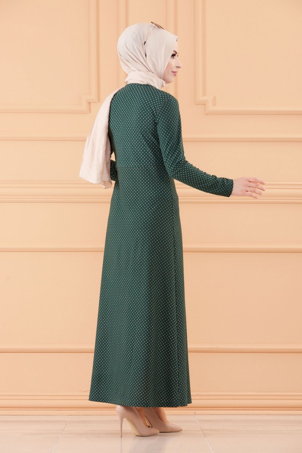 Robe longue évasée pour femme motif pois (Vêtement hidjab) - Couleur vert émeraude Vetement & Accessoire