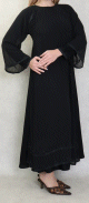 Robe Abaya Dubaï noire de qualité avec nombreuses perles noires et strass - REF. 38118 (45.00 €)