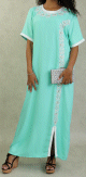 Robe orientale algérienne à manches courte brodée et perlée pour femme - Couleur Vert d'eau - REF. 32859 (29.00 €)