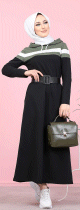 Robe moderne décontractée à capuche pour femme (Modest Fashion) - Couleur noir blanc et kaki - REF. 32965 (24.90 €) - En Promotion à 17.90 €