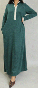 Djellaba tissu épais effet chiné pour femme avec dentelle et capuche - Couleur Vert chiné - REF. 33653 (29.90 €)