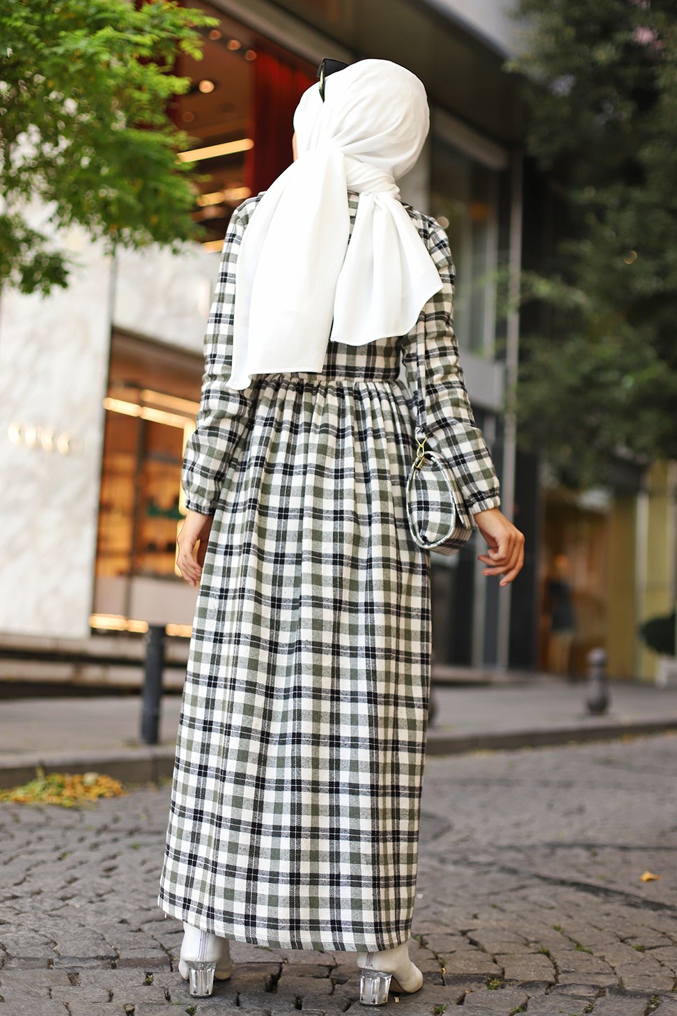 Ensemble Robe a carreaux avec sac a main assorti - Couleur blanc, noir et kaki