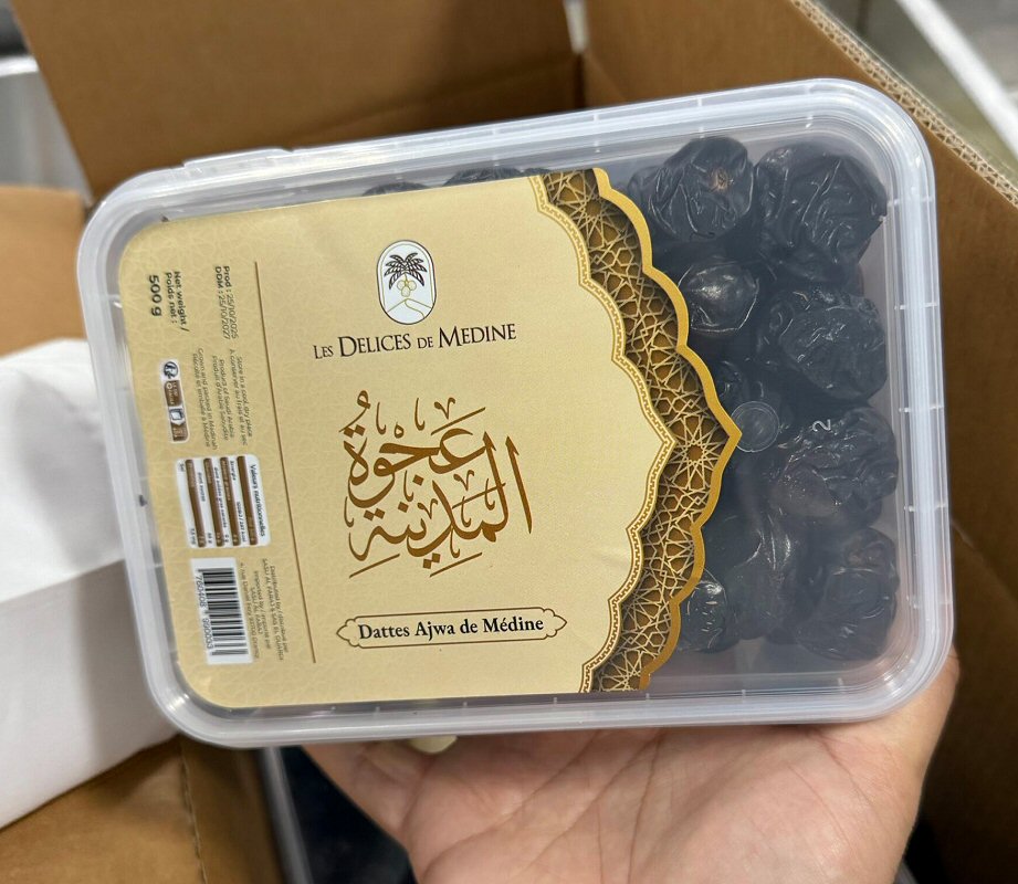 Dattes Al-Ajwa de Médine (Arabie Saoudite) emballées dans une boite hermétique, qualité Bio.